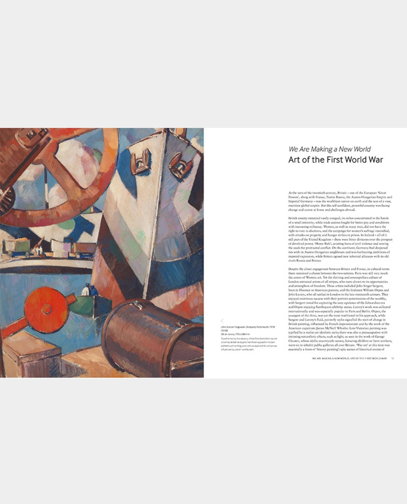 Artists featured include Paul Nash, C. R. W. Nevinson, David Bomberg, Anna Airy, John Singer Sargent, Walter Sickert, Wyndham Lewis, Eric Ravilious, Laura Knight, Henry Moore, Evelyn Dunbar, Linda Kitson, Peter Kennard, Gilbert & George, Colin Self, William Crozier, and Rosalind Nashashibi.