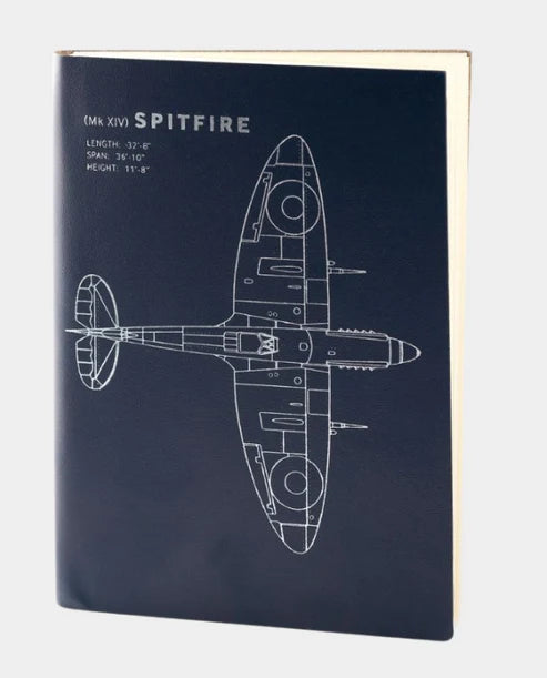 Stay organised with this practical set inspired by the iconic Spitfire. The bundle includes a recycled leather notebook, a matching blueprint pen and a foldable backpack featuring the same design. Ideal for study, work or travel, each piece combines everyday usefulness with a clear nod to classic engineering.