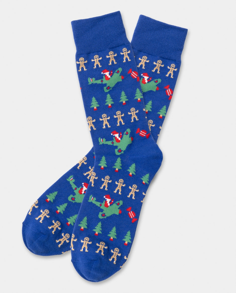 Designed exclusively for IWM’s 2025 Christmas collection, these festive socks feature a playful repeat pattern of Santa flying a Spitfire, surrounded by classic seasonal icons candy, gingerbread men, and Christmas trees all set against a rich blue background.