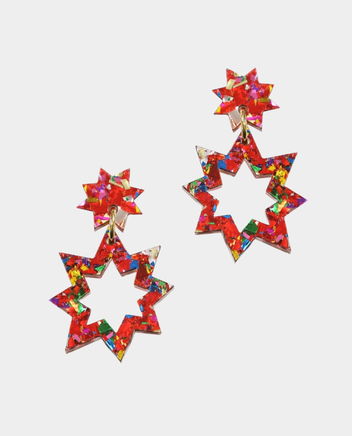 Make a bold statement with these acrylic spark drop earrings, infused with vibrant red confetti for a playful and eye-catching effect. Set on sterling silver posts, these earrings are designed with comfort in mind, making them ideal for those with sensitive ears.