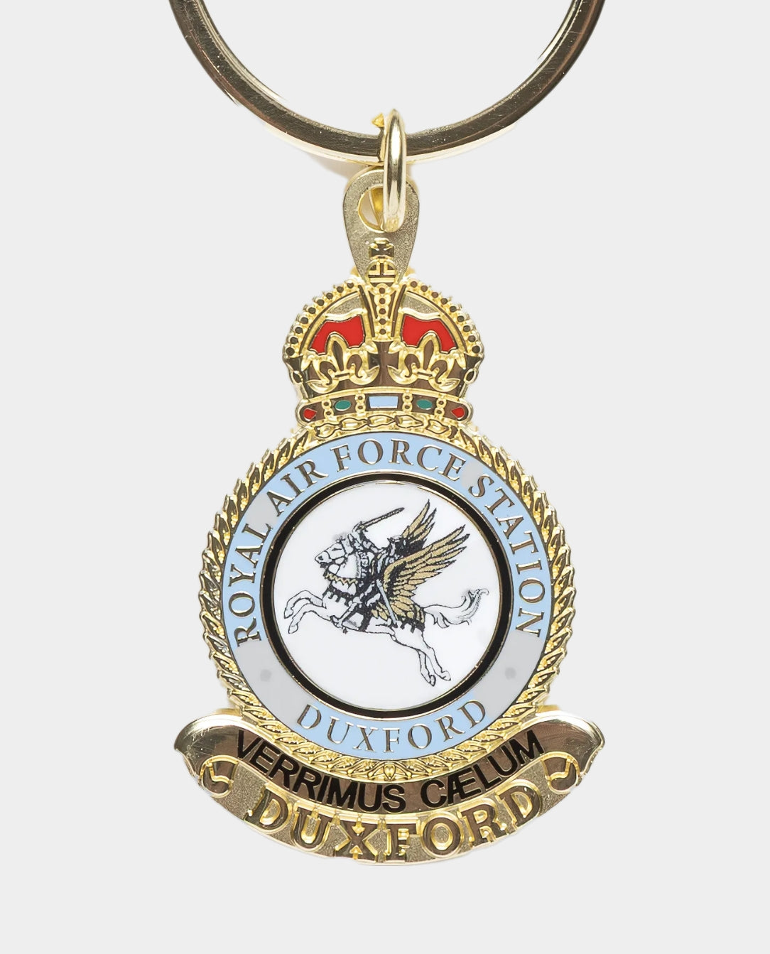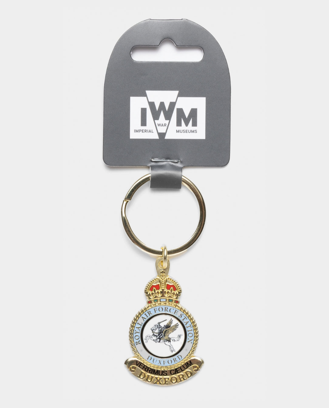 Celebrate British aviation history with this beautifully crafted souvenir keyring, featuring the distinguished crest of RAF Duxford.
