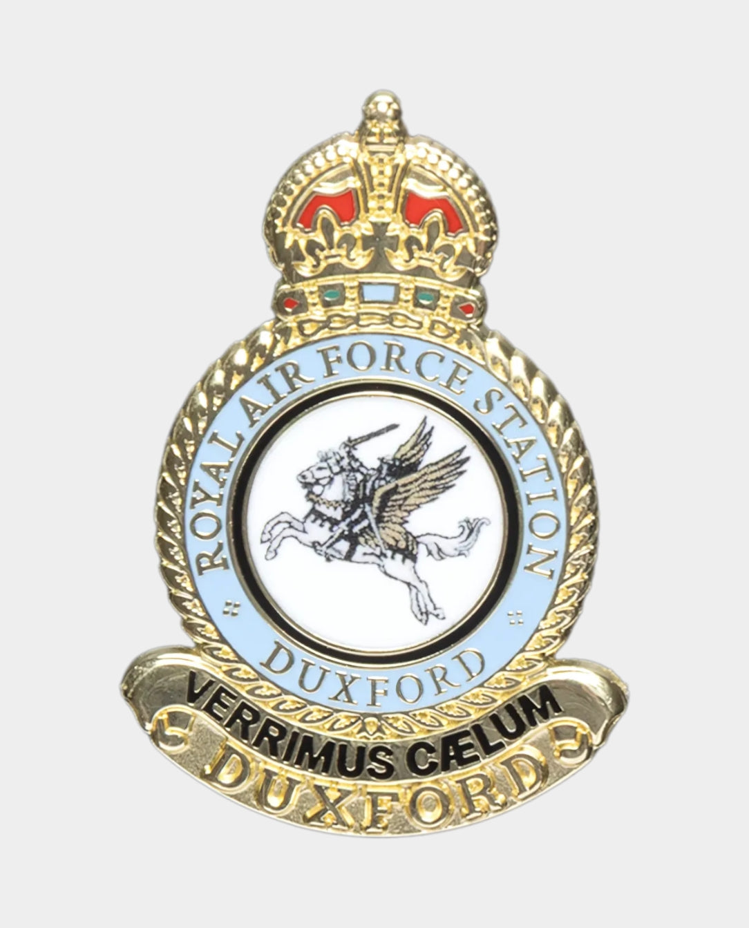 Celebrate British aviation history with this beautifully crafted souvenir pin badge, featuring the distinguished crest of RAF Duxford.