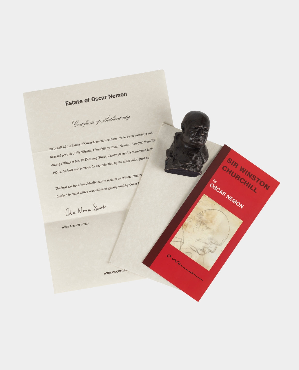 Reproduction of a bust of Churchill originally sculpted in the 1950s by Oscar Nemon, who was the only artist allowed to sculpt Churchill from life.