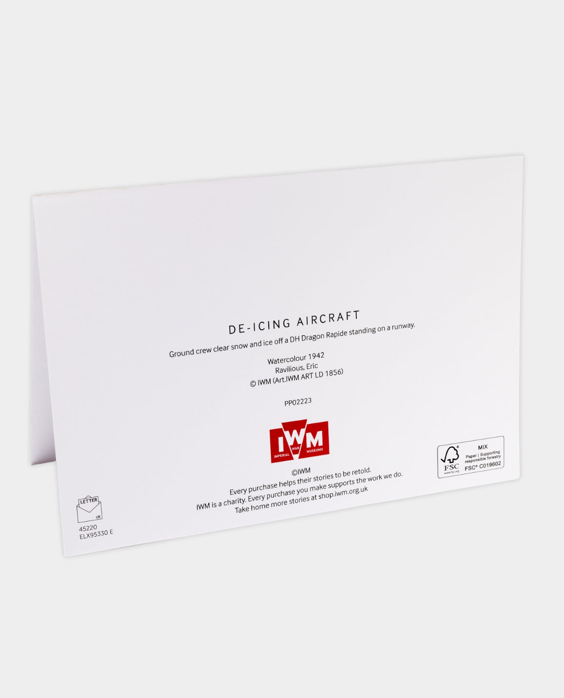 Share a piece of wartime art history with this pack of 10 greetings cards, featuring Eric Ravilious’ 1942 painting ‘De-icing Aircraft’ from the Imperial War Museums’ collection. Printed on FSC-certified gloss board with white wood free envelopes, these cards are ideal for festive messages or year-round correspondence.