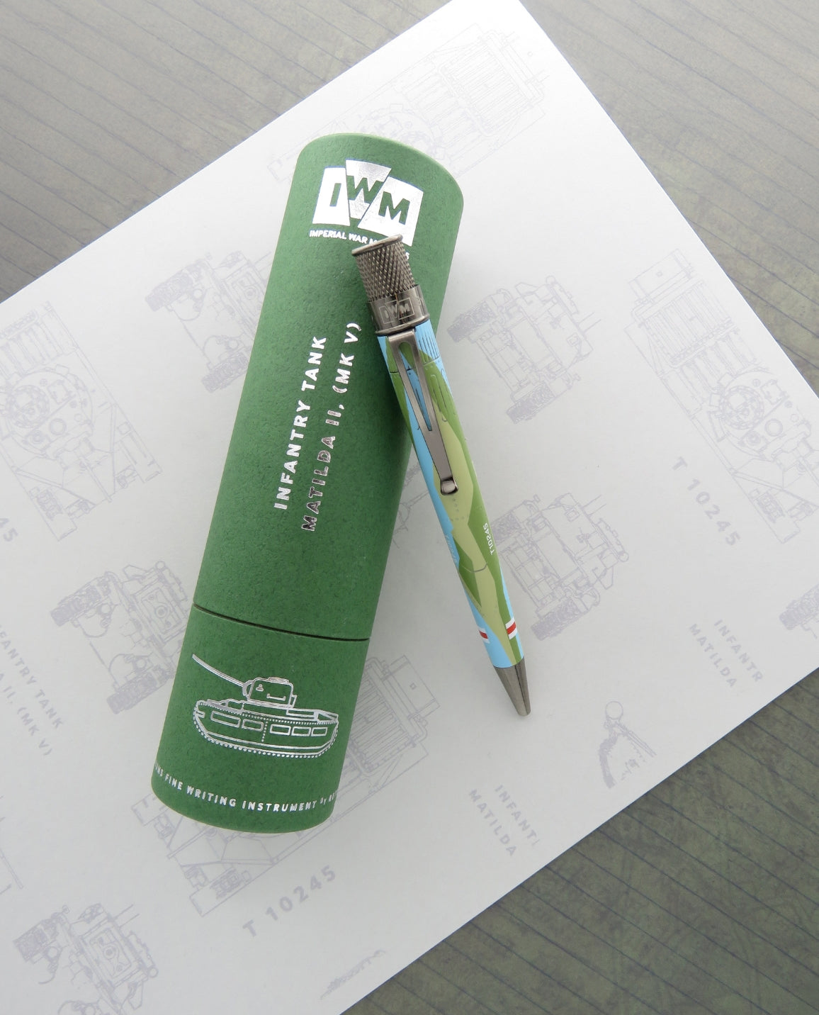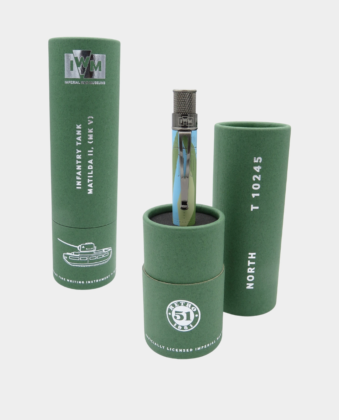Celebrate a remarkable piece of history with this Matilda Tank pen, finished in a distinctive camouflage pattern of khaki, light blue, and olive green. Inspired by the rare MkV Matilda II tank on display at IWM North, this pen pays tribute to the iconic Caunter camouflage used by British forces in North Africa during the Second World War.