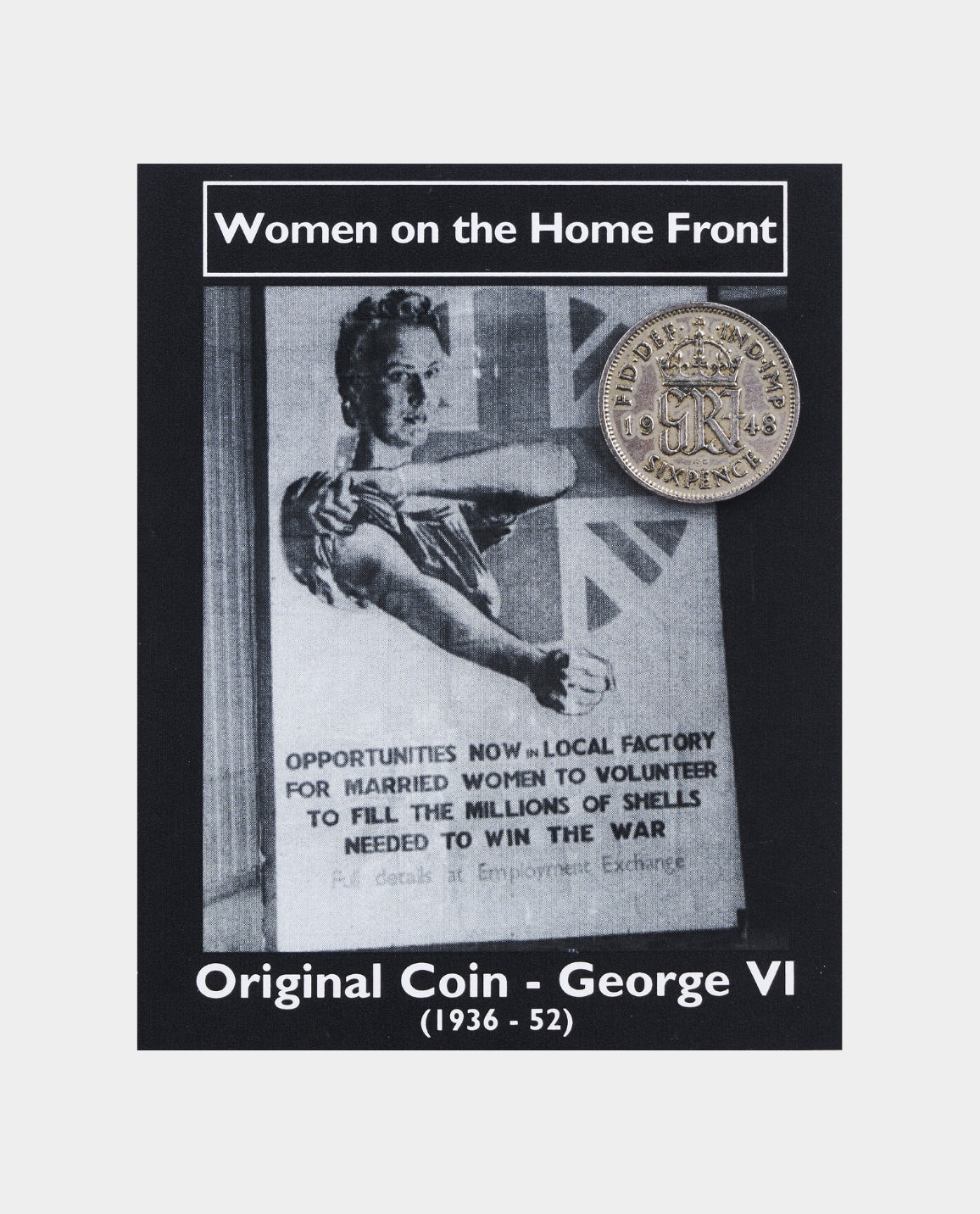 This original Second World War sixpence coin commemorates Women's roles on the homefront.